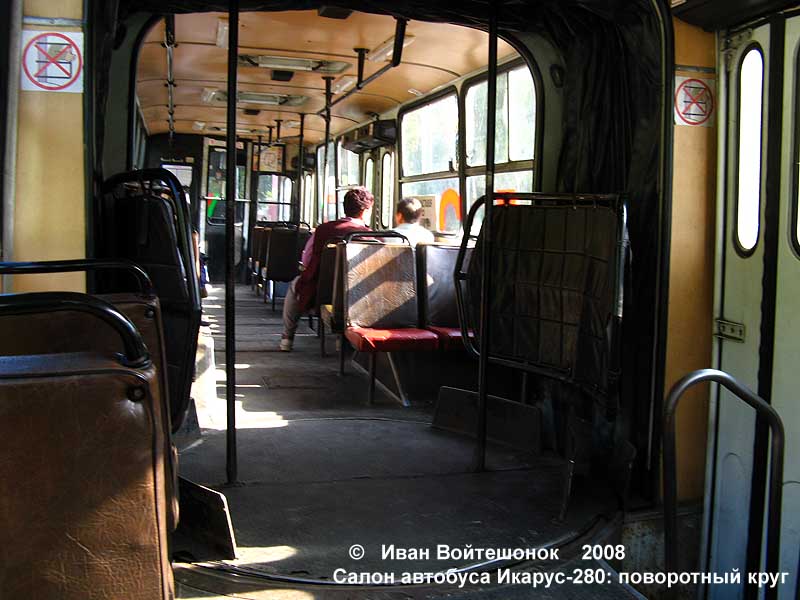 С точки зрения пассажира можно отметить неэффективное отопление салона в зимний период, неплохую систему вентиляции, удобную компоновку салона с накопительной площадкой, однако очень высокий уровень пола (двигатель расположен по центру под полом). Автобус имеет широкий центральный проход (950 мм). Однако для современного города серьезным недостатком автобуса являлась его "высокопольность": чтобы попасть в салон, нужно было преодолеть три ступеньки. В 1990-х годах модель 280 выпускалась и в Беларуси - на предприятии Амкодор. Таких машин немного, но они исправно служили в автопарках города Минска, несколько автобусов продолжают работать в Витебске и Гродно. В 1990-х годах Минск лишился прямых поставок автобусов из Венгрии, а позже распалось и само предприятие, выпускавшее Икарус-280. Производство на Амкодоре было единичны, поэтому столица и другие города Беларуси в больших объемах закупали поддержанные автобусы из Германии, Чехии, Польши и других стран. Капитальным ремонтом занимался Гомельский авторемонтный завод (сейчас выпускает автобусы Радимич). Автобусы получали новый кузов, а также обновленную обивку салона, в принципе, мало отличающуюся по форме от заводской. На снимках - автобус, выпущенный в Беларуси (слева), поставленный из Германии (в центре), отремонтированный в Гомеле. На снимках: слева - автобус, произведенный на "Амкодор", в центре - автобус из Западной Европы, справа - прошедший капремонт на Гомельском АРЗ В данный момент автобусы Икарус-280 в Минске выведены из эксплуатации. Последние машины работали до пятого сентября 2007 года. За последние несколько лет им на смену приходили миснкие автобусы МАЗ-105. Автобусы эксплуатировались в парках 1,5,6,7. Ресурс автобусов был выработан более чем на сто процентов. Многие прошли капремонт. Довольно большое количество автобусов продолжает работать во многих городах республики. Капитальным ремонтом занимается Гомельский авторемонтный завод. На снимках: последние "минские" Икарус-280 незадолго до вывода из эксплуатации Тем не менее, Икарус-280 продолжают успешно эксплуатироваться в других крупных городах республики. За 2007-2008 годы было списано немало автобусов. На то время Икарус-280 в большом количестве эксплуатировались в Бресте, Витебске, Гродно, Пинске, Лиде, Полоцке, Жлобине и других городах республики. Причем сохранились даже автобусы в желтой раскраске, до боли знакомой людям из СССР. Однако с каждым годом их становится все меньше: в 2009-2010 годах продолжалась замена автобусов Икарус-280 на МАЗ-105.